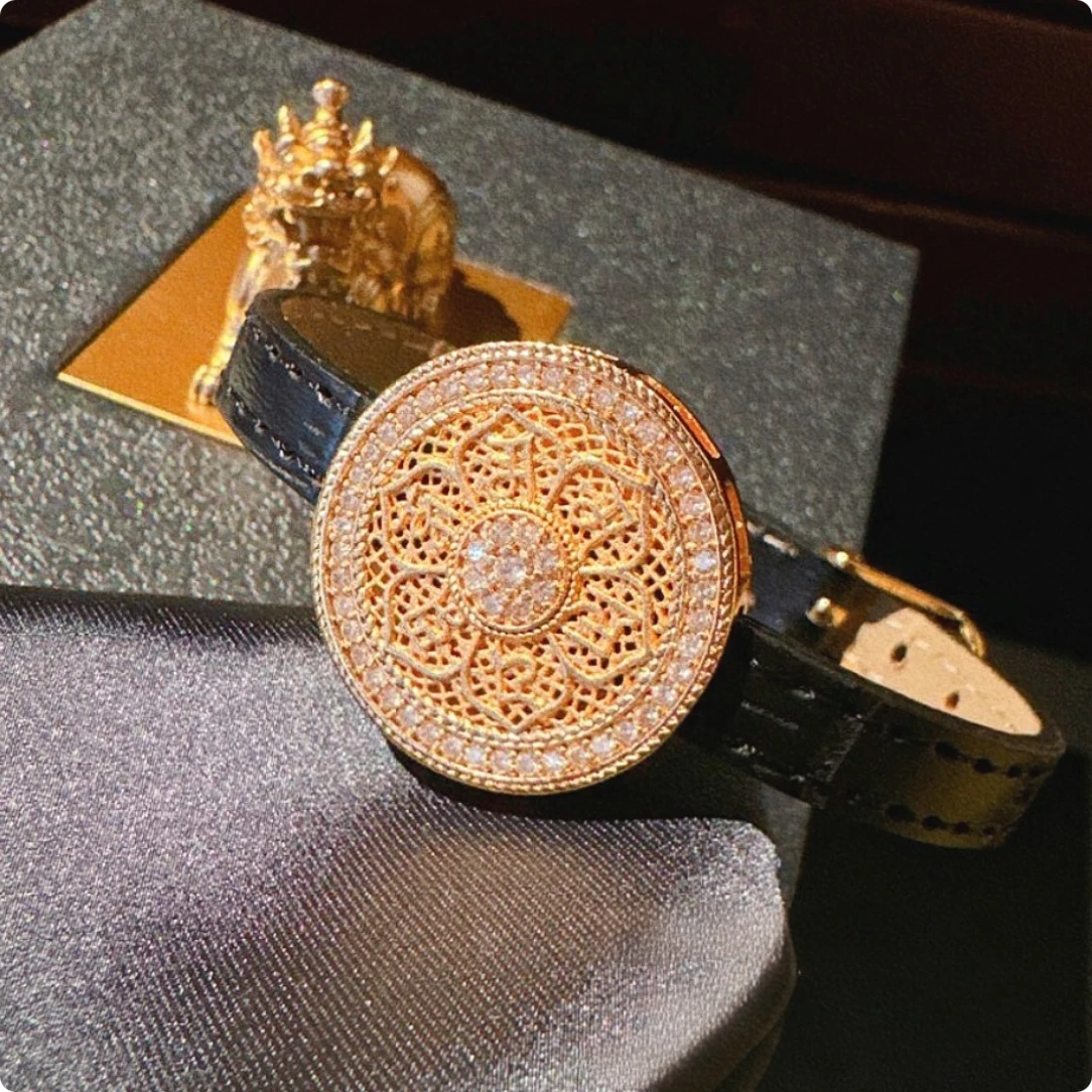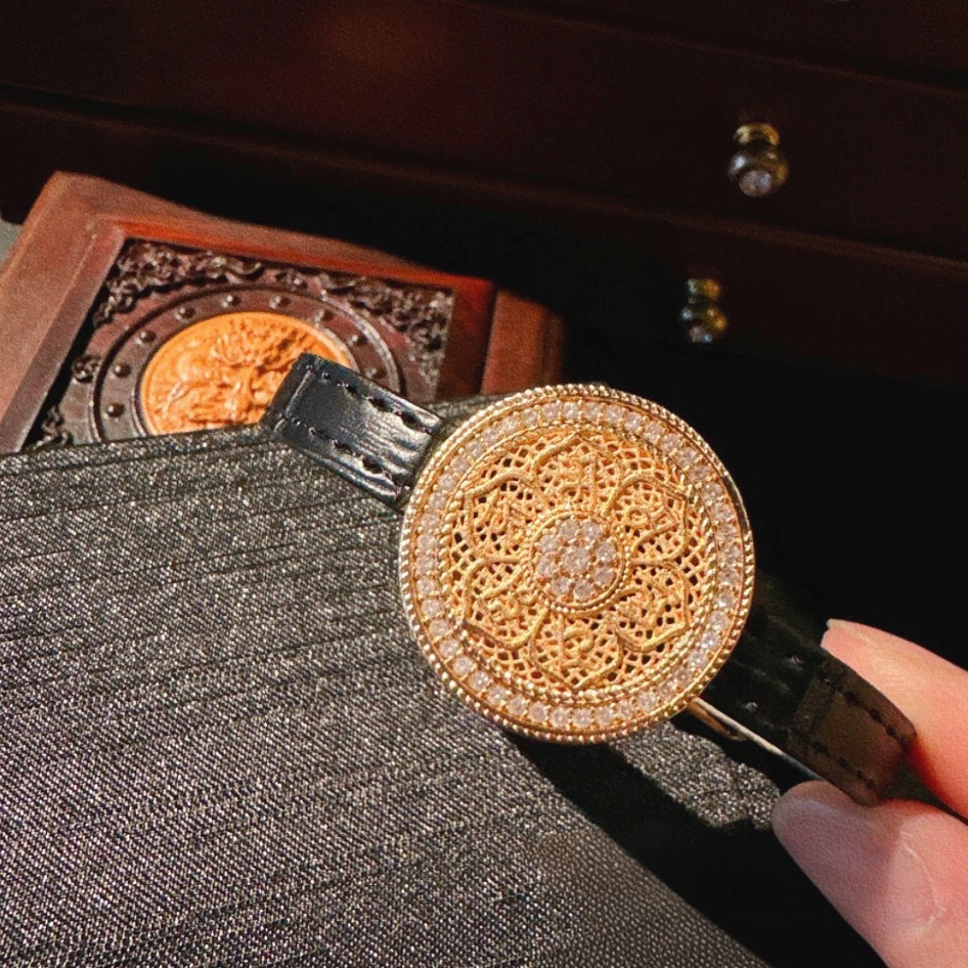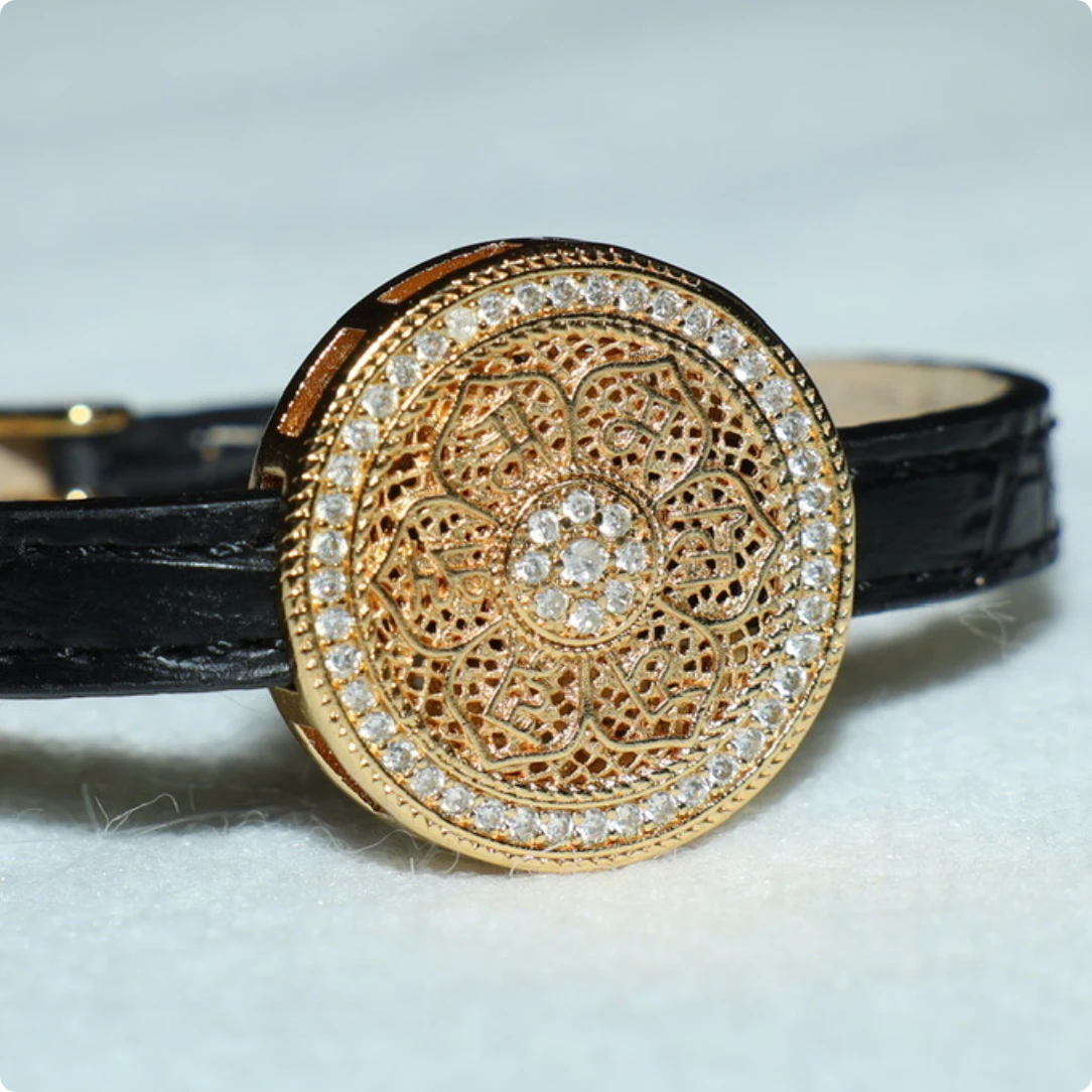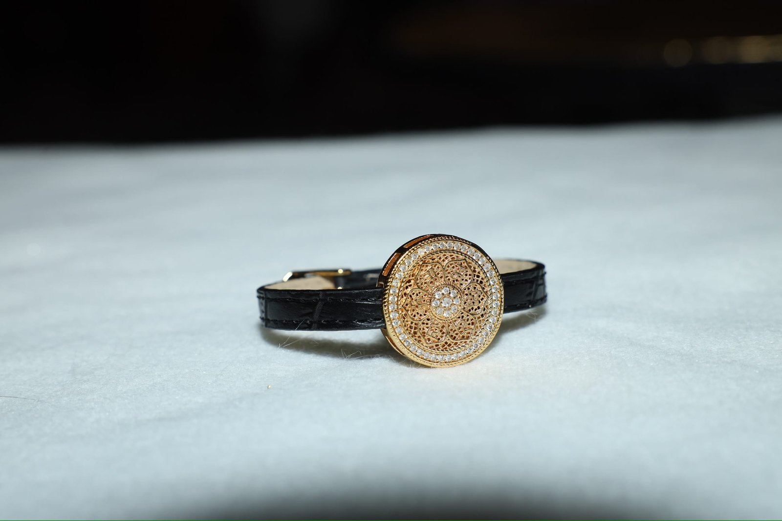 Gold-plated K Gold + Leather + Cubic Zirconia