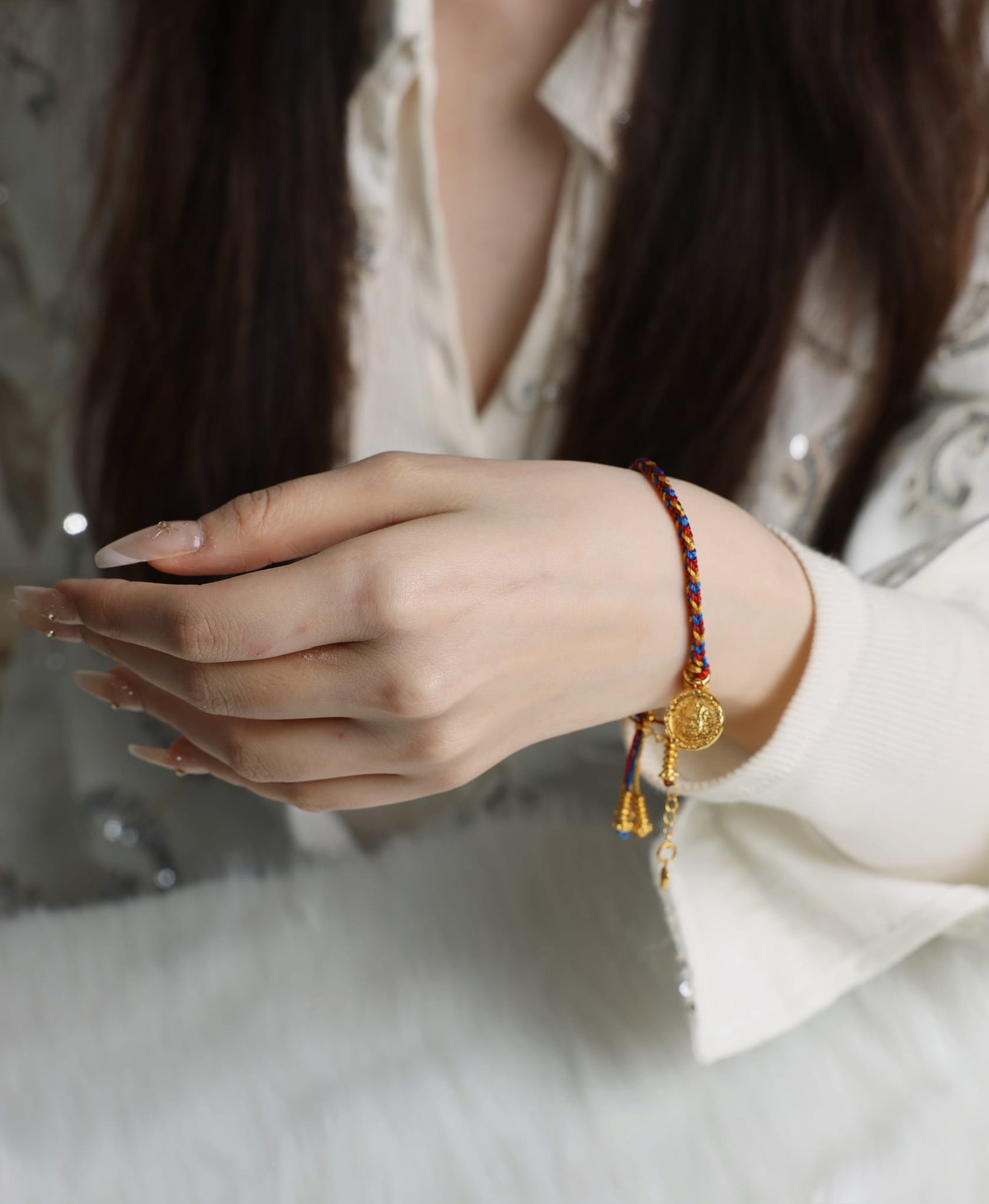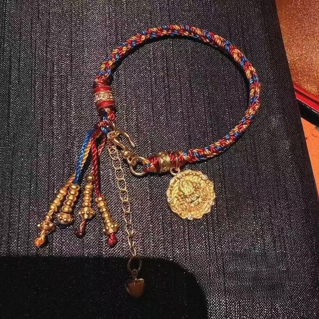 Handwoven prosperity talisman channeling Yellow Jambhala – chief Buddhist wealth deity.